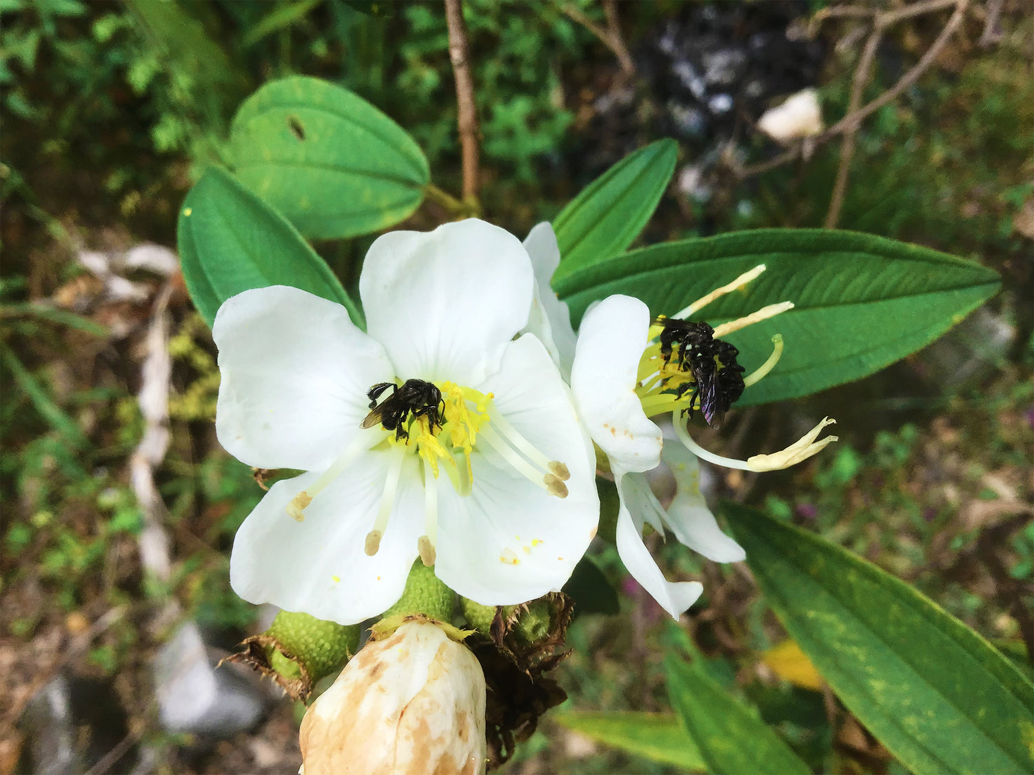 日本ではなじみのない蜂ですが、世界中の熱帯・亜熱帯地域に400~500種類ほど生息し、ボルネオ島のハリナシバチだけでも35種類ほど存在すると言われています。