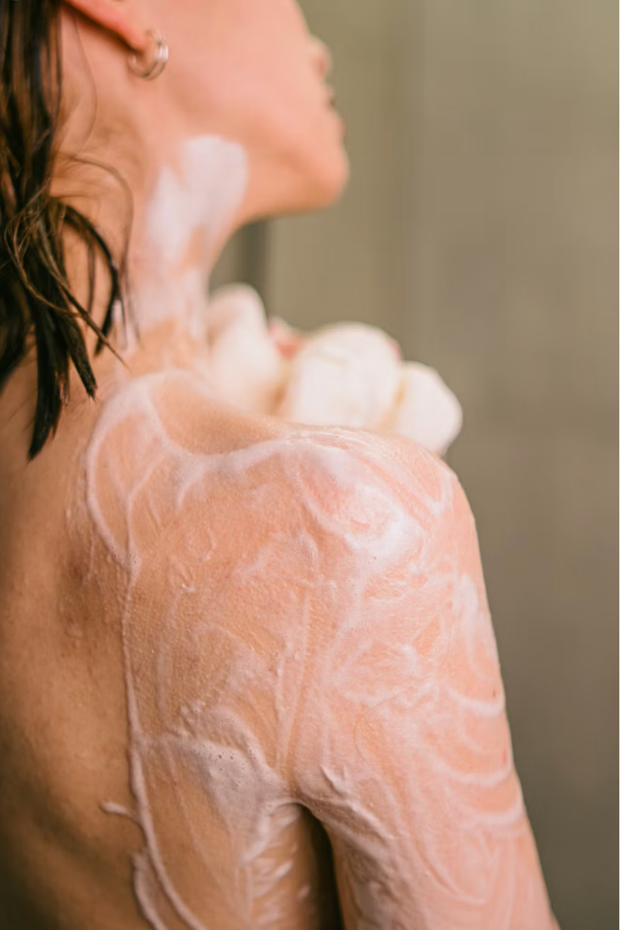 石けんをよく泡立ててからやさしく洗い、その後しっかりと洗い流してください。