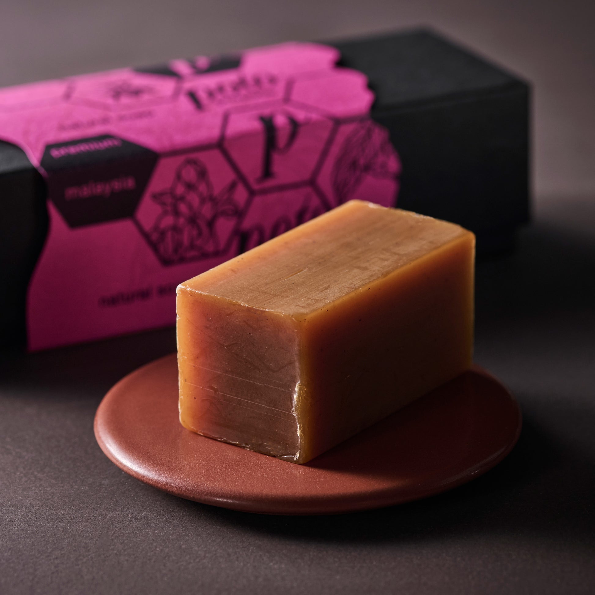 マレーシア・ボルネオ島をはじめとする熱帯地域の自然の宝物、「ハリナシバチのはちみつとプロポリス」の天然成分を閉じ込めた贅沢なナチュラルソープです。